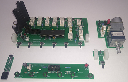 Układ bazuje na mikrokontrolerze Atmega 16/32 z napisanym własnoręcznie programem, który steruje przekaźnikami i potencjometrem z silnikiem. Jedynym brakiem układu jest funkcja włącz/wyłącz wzmacniacz. Zdecydowałem się pozostawić włączanie manualne z powodu tego, że funkcja ta wymagałaby dodatkowego zasilania zewnętrznego, co mi bardzo psuje poczucie "fabrycznego" sprzętu albo stałego działania transformatora fabrycznego, co również mi się nie podoba z wielu przyczyn. W trzeciej opcji, można by zastosować transformator pomocniczy, jednak na jego umiejscowienie i ekranowanie jego zakłóceń nie ma miejsca, tym bardziej dobrego.